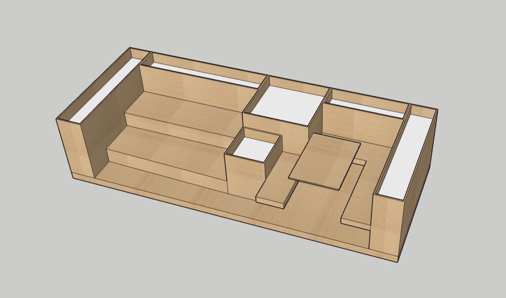 Variante 2: Sitzbereich mit Tisch, Spiel-Sitz-Treppe und Pflanzbeeten