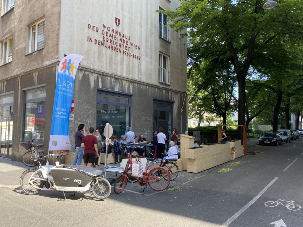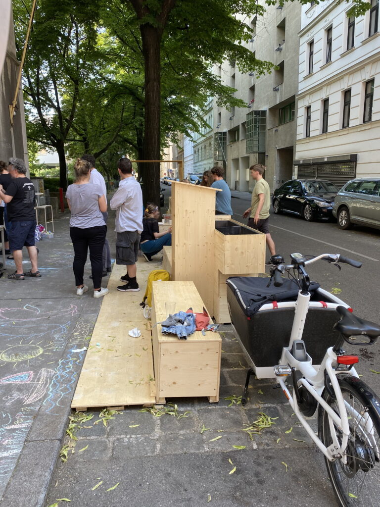 Die Eröffnung war ein voller Erfolg – es wurde bemalt, bepflanzt und getratscht. Auch das Mo.Hub-E-Lastenrad war schon im Einsatz.