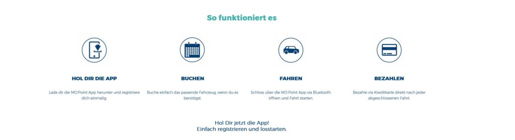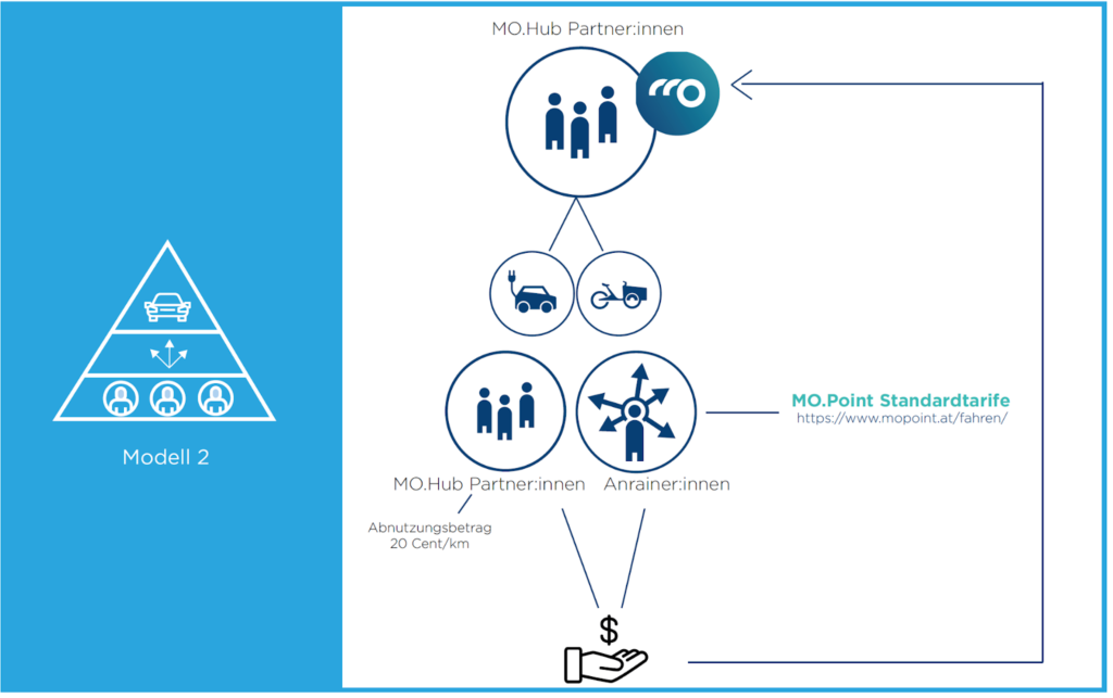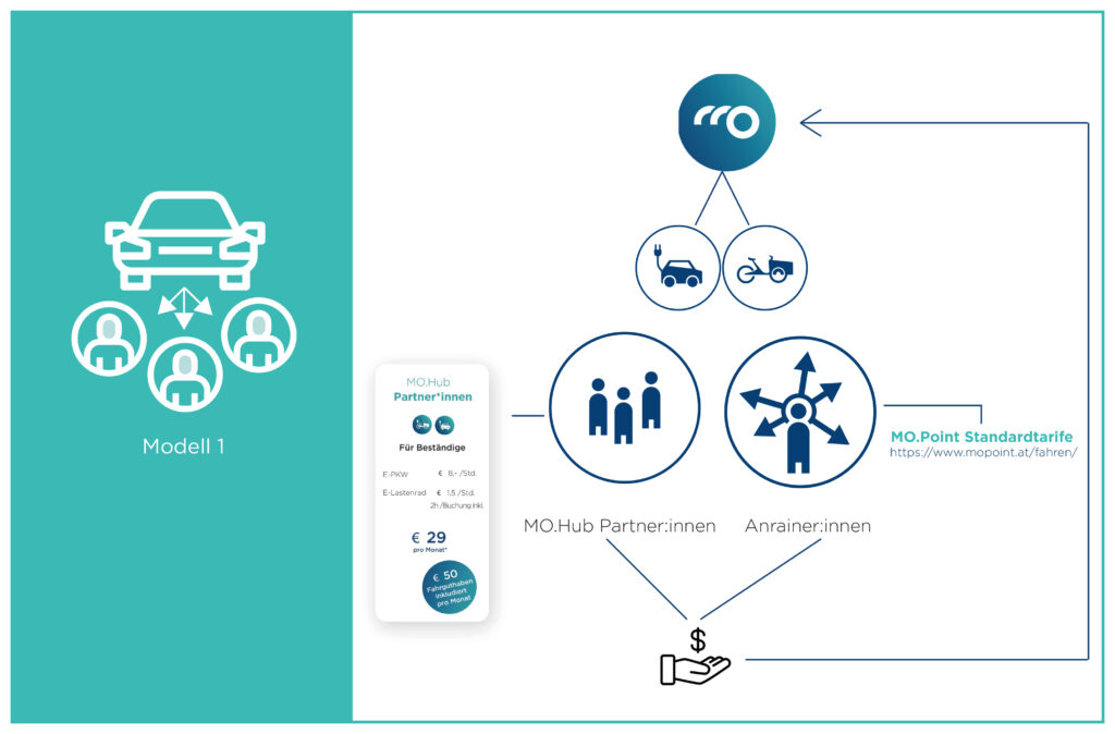 Die Fahrzeuge werden selbstverständlich der gesamten Nachbarschaft zur Verfügung stehen. Alle anderen Anrainer*innen fahren jedoch zu klassischen MO.Point Tarifen. Darum nutze jetzt die Gelegenheit und werde Mo.Hub-Partner*in und erhalte zusätzliches Fahrtguthaben!
